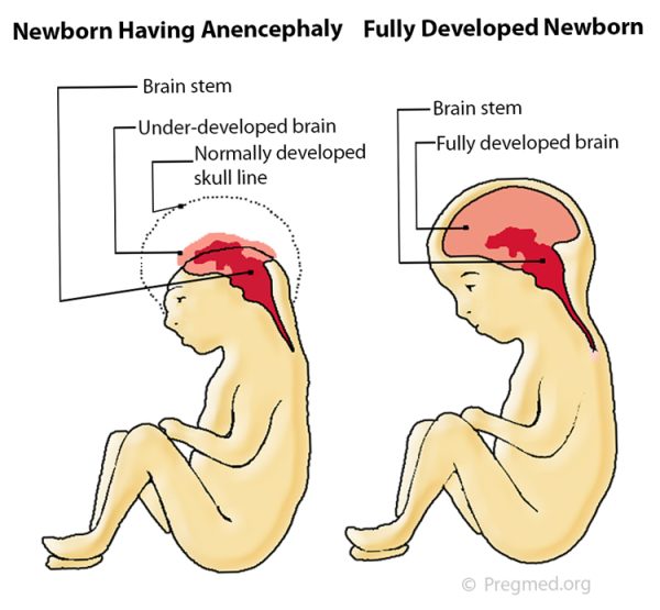 La ANENCEFALIA consiste en la ausencia de huesos craneales y atrofia general, con una consecuente gran apertura del cráneo.